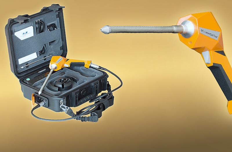 bezeichnet ein laserbasiertes SF6-Gasmesssystem. Sein portables Design und die integrierte Stromversorgung erlauben eine effiziente Diagnose von gasisolierten Schaltungen (GIS) und genaue Ortung von Gaslecks sowie die Bestimmung der Leckgröße.